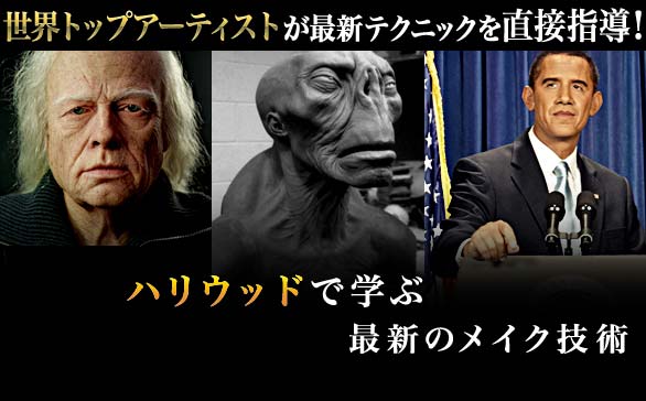 傷メイクや火傷メイクといった特殊メイクの基礎から、グロテスクなゾンビ、老人メイクやオリジナルのキャラクターメイクに至るまでを実践的に学習できます。